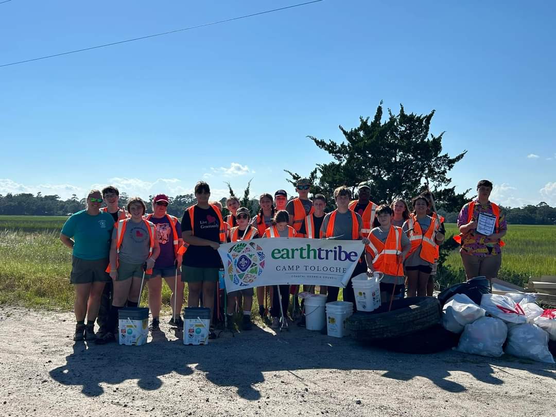 We wrapped up weekend one of our new Earth Tribe program. Our Scouts and their adult leaders are committed to making an impact on their community and environment. This weekend, they engaged in five hours of conservation service, which included participating in the International Coastal Cleanup with our friends at Keep Golden Isles Beautiful. Our Scouts quickly learned how disgusting it is cleaning up other people’s trash, and will likely take those lessons back home to their own units.